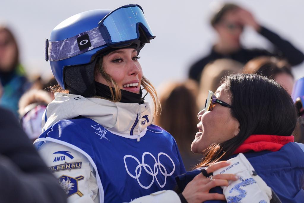 谷爱凌在场边和母亲谷燕拥抱的画面,在三项比赛中都被现场的摄影记者记录了下来