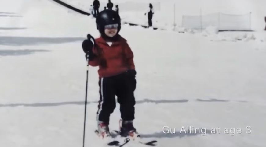 谷爱凌3岁接触滑雪,7岁入选专业滑雪队,8岁加入美国业余自由式滑雪队联盟,9岁就在赛场上大放异彩,蝉联美国青少年锦标赛总排名第一。